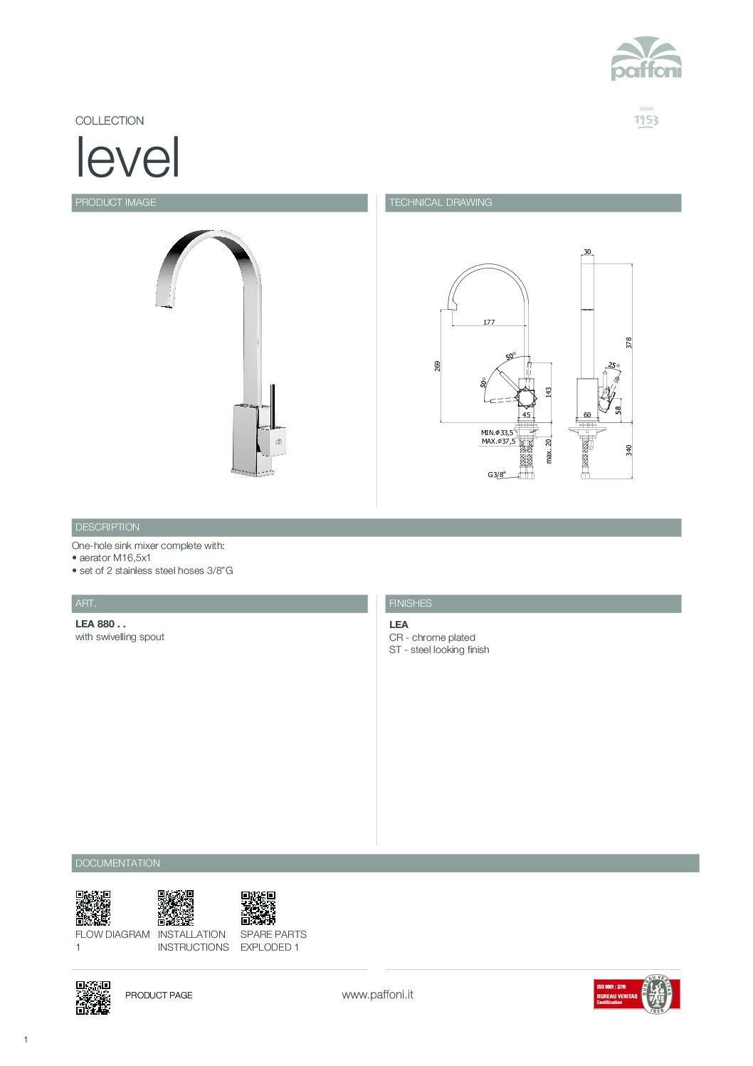 Paffoni Level håndvaskarmatur højt i krom kombinerer Italiensk design med funktionalitet til det moderne badeværelse. Dette elegante armatur i firkantet stil leveres uden løft op-funktion og skal kombineres med bundventil for optimal funktion. Armaturet inkluderer 2 fleksible tilslutningsslanger på 45 cm og kommer med VVSdeluxe’s 5 års garanti på Paffoni produkter.