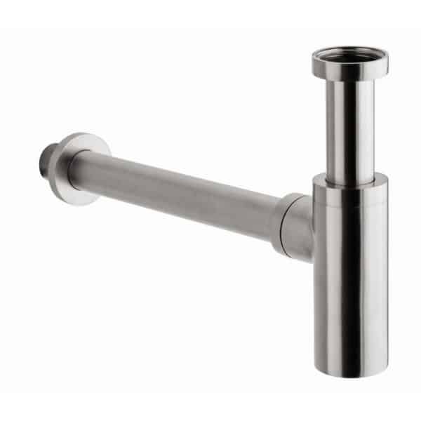 Design pungvandlås til håndvask i elegant finish, der kombinerer funktionalitet med stilfuldt design. Med 32 mm. rør til vægmontering og inkluderet roset passer denne pungvandlås perfekt til alle 1 1/4″ bundventiler. Fremstillet af kvalitetsmaterialer, der sikrer lang levetid og nem vedligeholdelse. Tilgængelig i 8 forskellige farver og materialer for at matche ethvert badeværelsesdesign.