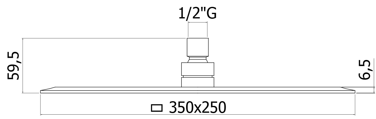 Blanc ultra tyndt hovedbruser 350 mm x 250 mm med 1/2” afgang. Desuden har hovedet en tykkelse på kun 6,5 mm.